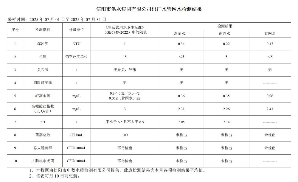 7月-出厂水、管网水检测