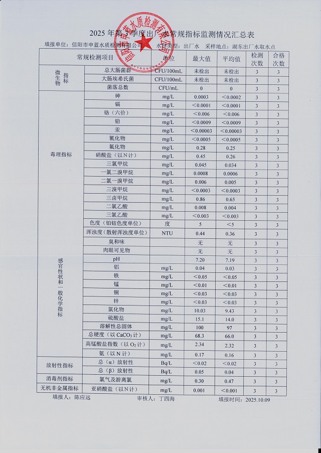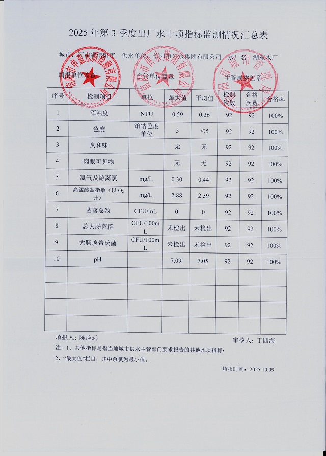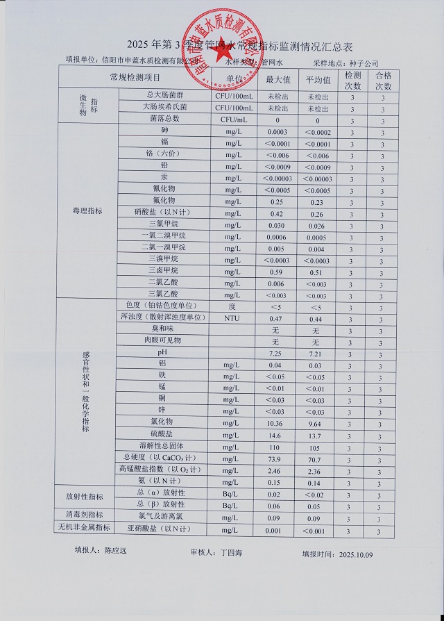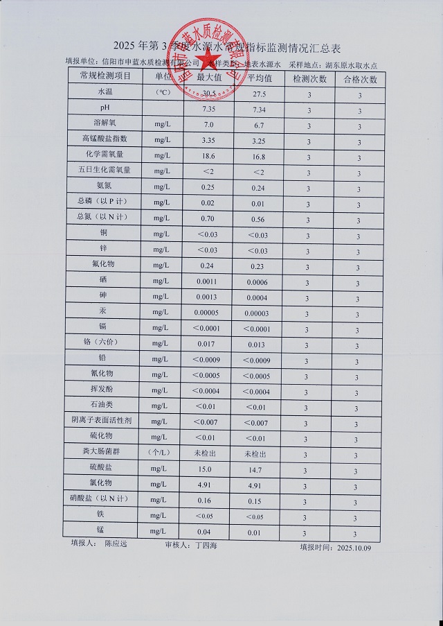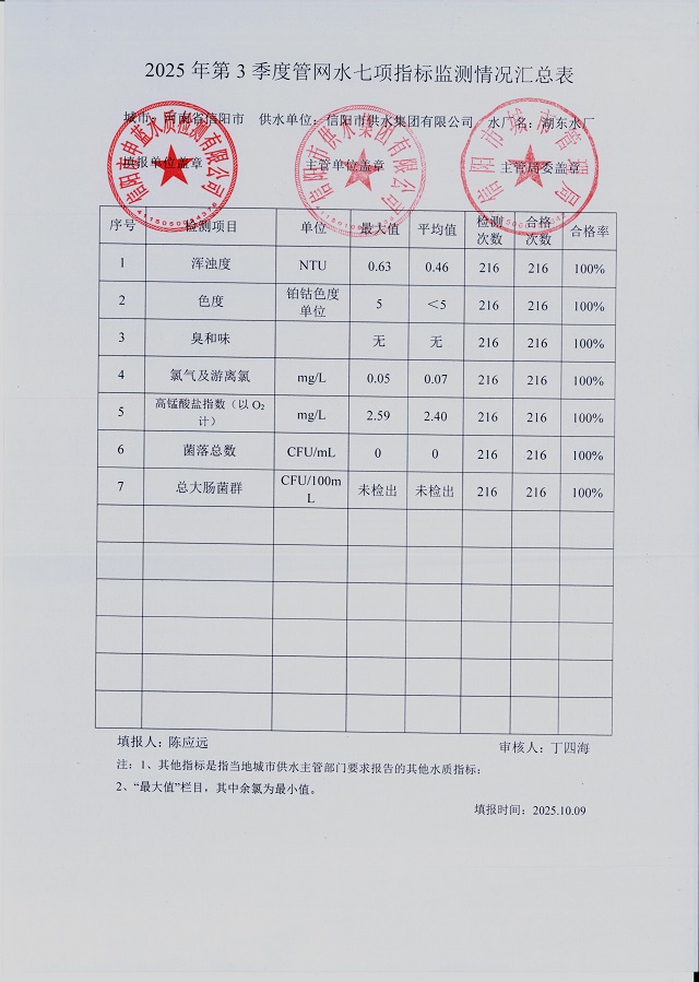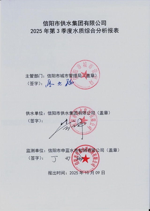 2025年第三季度水质综合分析报表