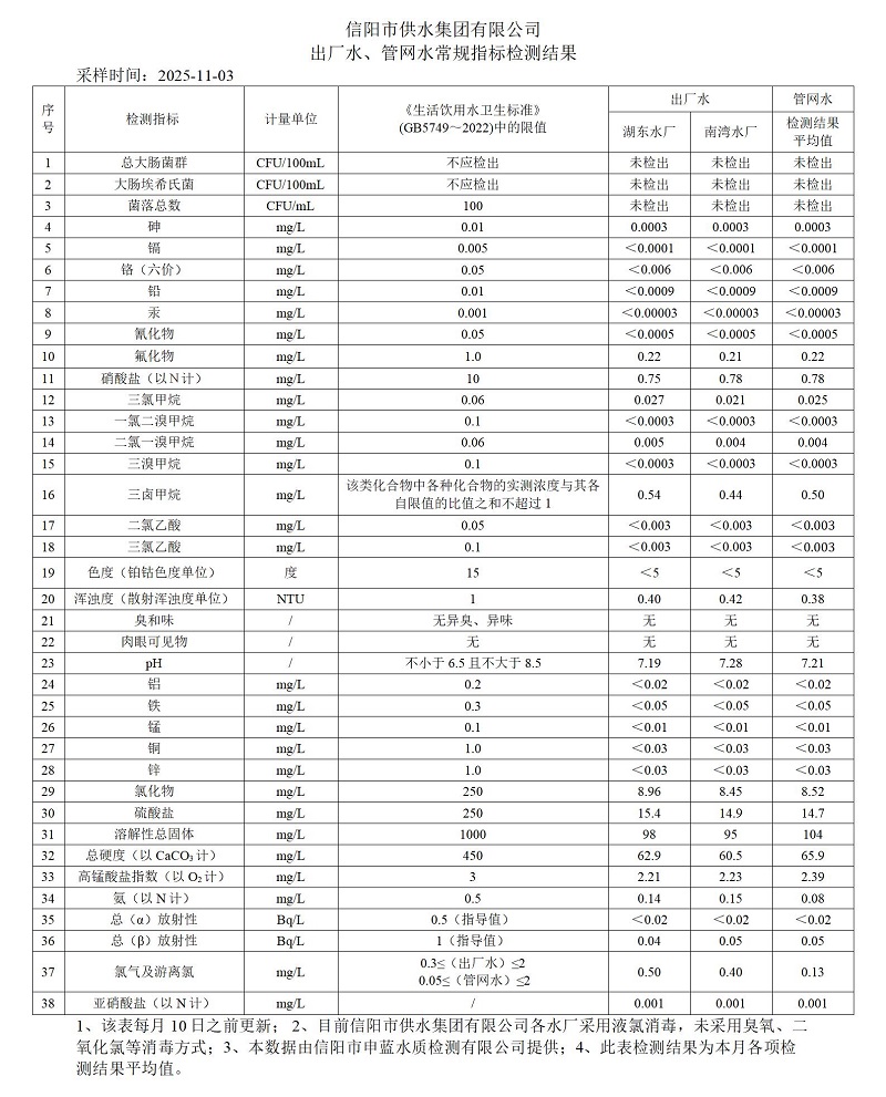 11月-出厂水、管网水检测