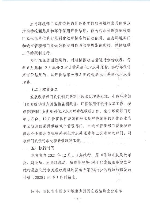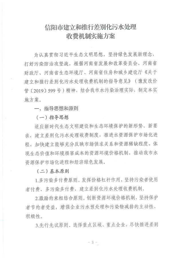 信发改价管〔2021〕333号 关于印发《信阳市建立和推行差别化污水处理收费机制实施方案》的通知